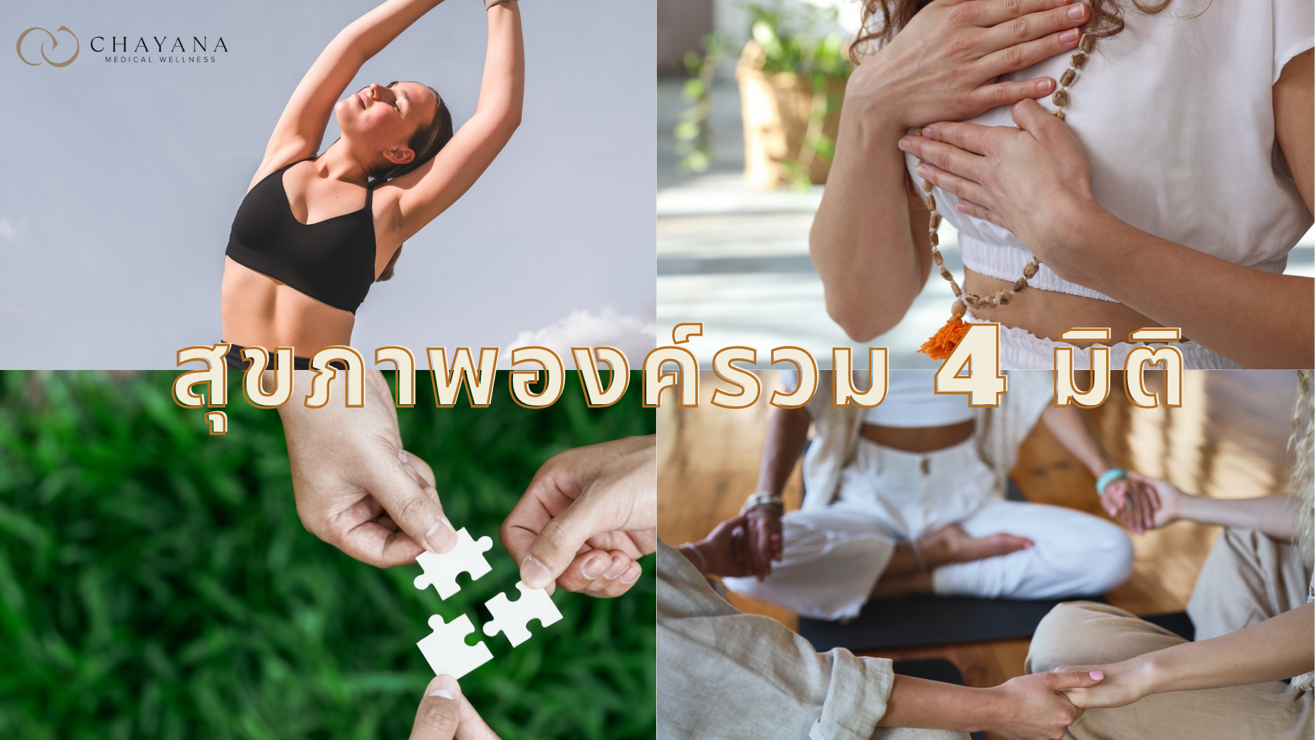 สุขภาพองค์รวม 4 มิติ ล้วนส่งผลต่อกันภายในร่างกาย การดูแลสุขภาพครบทั้ง 4 มิติเป็นวิธีดูแลสุขภาพแนวทางใหม่ที่เน้นการดูแลสุขภาพอย่างรอบด้าน เป็นวิธีที่ช่วยให้เรามีชีวิตที่มีคุณภาพทั้งภายในและภายนอกอย่างแท้จริง ไม่ใช่เพียงแค่จุดเดียว แต่เป็นการรักษาสมดุลภายในร่างกาย ได้ หากร่างกายอ่อนแอ อาจส่งผลกระทบต่อ จิตใจหดหู่ และส่งผลกระทบต่อร่างกาย การใส่ใจดูแลตนเองในทุกมิติ ไม่เพียงช่วยป้องกันโรค แต่ยังส่งเสริมให้เราดำเนินชีวิตได้อย่างมั่นคงและยั่งยืน ที่ Chayana Medical Center สหคลินิก เน้นการดูแลรักษาตั้งแต่ภายในร่างกาย และ สุขภาพแบบรอบด้าน ใช้ศาสตร์การรักษาแบบผสมผสาน ทั้งวิทยาศาสตร์การแพทย์และศาสตร์ธรรมชาติ เน้นการรักษาเชิงรุกเฉพาะบุคคล เริ่มไว ได้เปรียบกว่า ที่ Chayana ลาดพร้าว ติดต่อ สอบถาม เพื่อรับคำแนะนำได้ฟรี